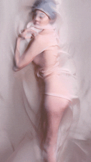 Trong khi đối tượng nữ đứng yên, vải di chuyển trên cơ thể cô như làn khói mỏng.