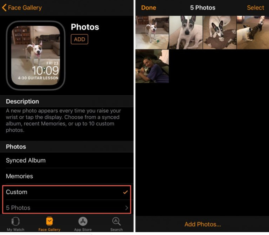 Giả sử bạn không muốn sử dụng Memories hoặc Album được đồng bộ hóa làm mặt đồng hồ. Bạn có thể chọn bất cứ ảnh nào hoặc bộ sưu tập ảnh bạn muốn làm hình nền Apple Watch! Và giống như Memories, bạn sẽ thấy một bức ảnh khác nhau với mỗi lần nhìn vào Apple Watch.