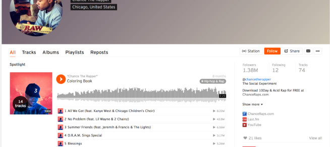 SoundCloud cũng là nền tảng rất phổ biến và tốt mà nhiều người yêu thích âm nhạc sử dụng. Một số người sẽ nói rằng đó là một nơi tốt nhất cho các nghệ sĩ ít được biết đến và phối lại và bìa.