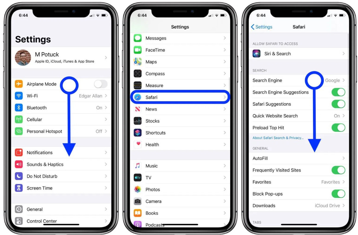 2. Vuốt xuống và chạm vào Safari.